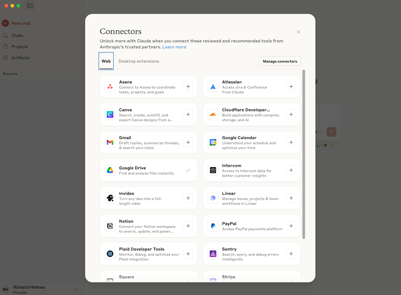 Let’s imagine I want to use Claude to check on the status of stories in development in Linear without having to log into Linear. With Claude’s new “Connectors” feature you can get MCP servers set up super quickly.
