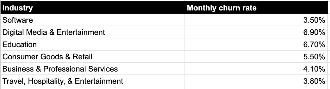 Here’s what the latest churn rates look like across various industries: