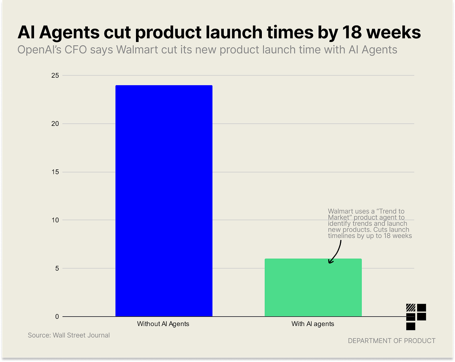 OpenAIâs Chief financial officer says that Walmart has reduced its âtrend to productâ launch timeframe for new products by up to 18 weeks when using AI agents: