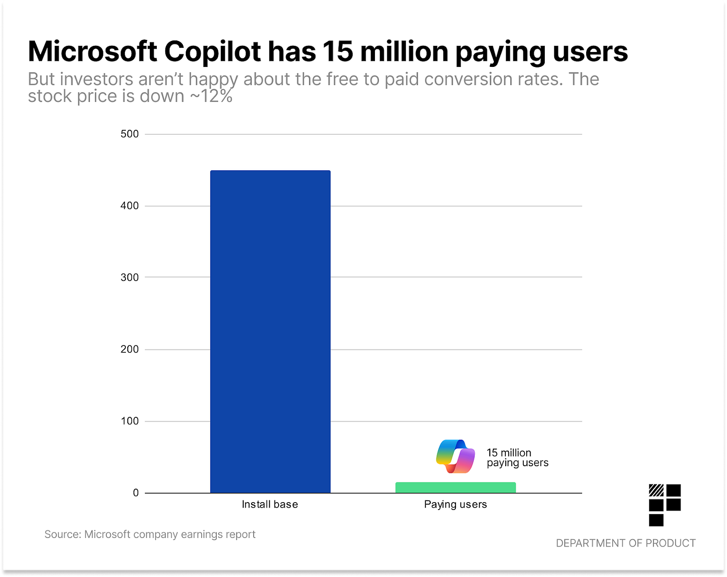 Microsoft has revealed it now has 15 million paying users of 365 Copilot. At $30 per person, Microsoft is likely on track to generate several billions of dollars annually from these add-on subscriptions. Overall, this is a 3.3% conversion rate but investors weren’t particularly happy about that vs the amount of money the company has invested into Copilot.