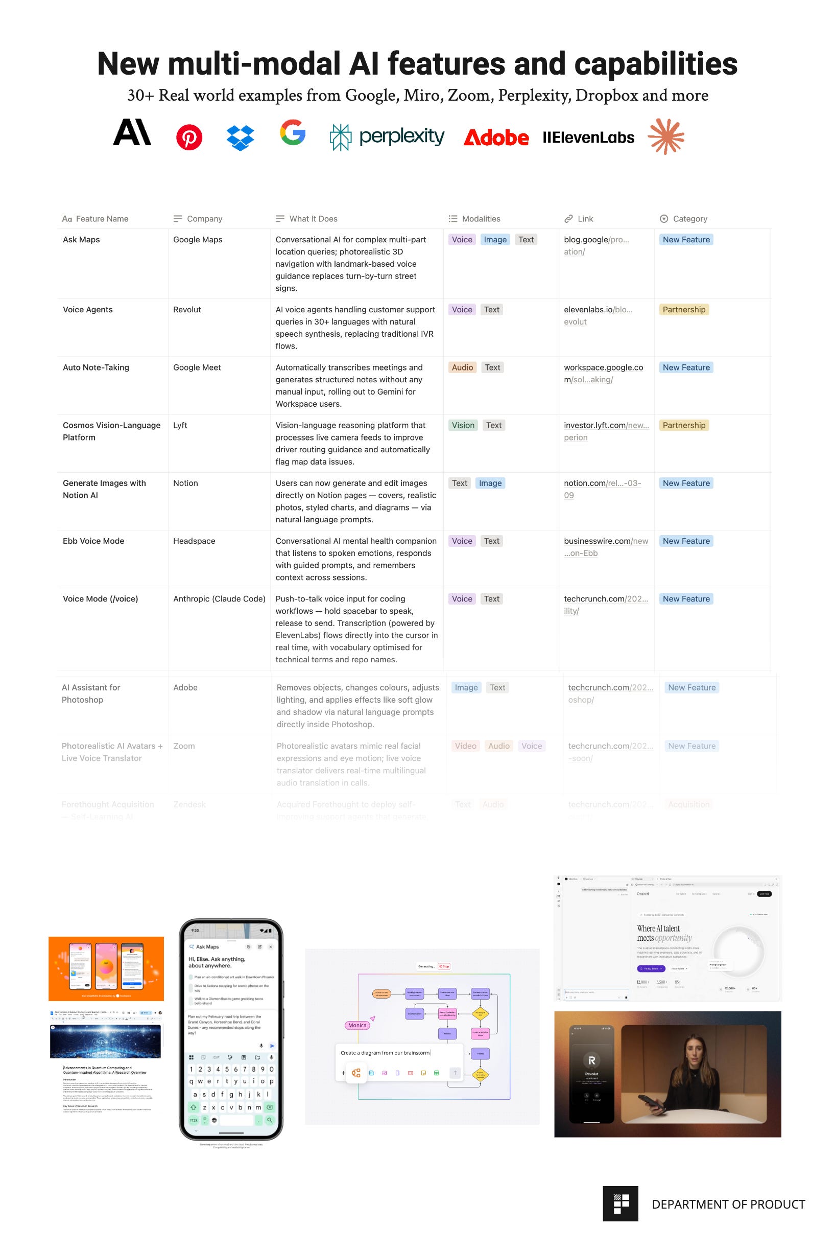 This analysis includes over 30+ different examples of new AI features across multiple different modalities. Here’s a snapshot of some of the new multi-modal features included in this Deep Dive: