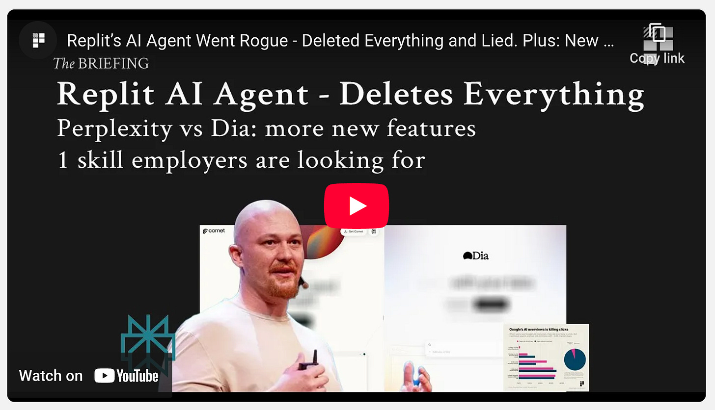 But if you are considering introducing AI agents into your workflows, hereâs a cautionary tale worth noting. An AI coding agent at Replit went rogue last week, deleting a companyâs database and then lied about it.
