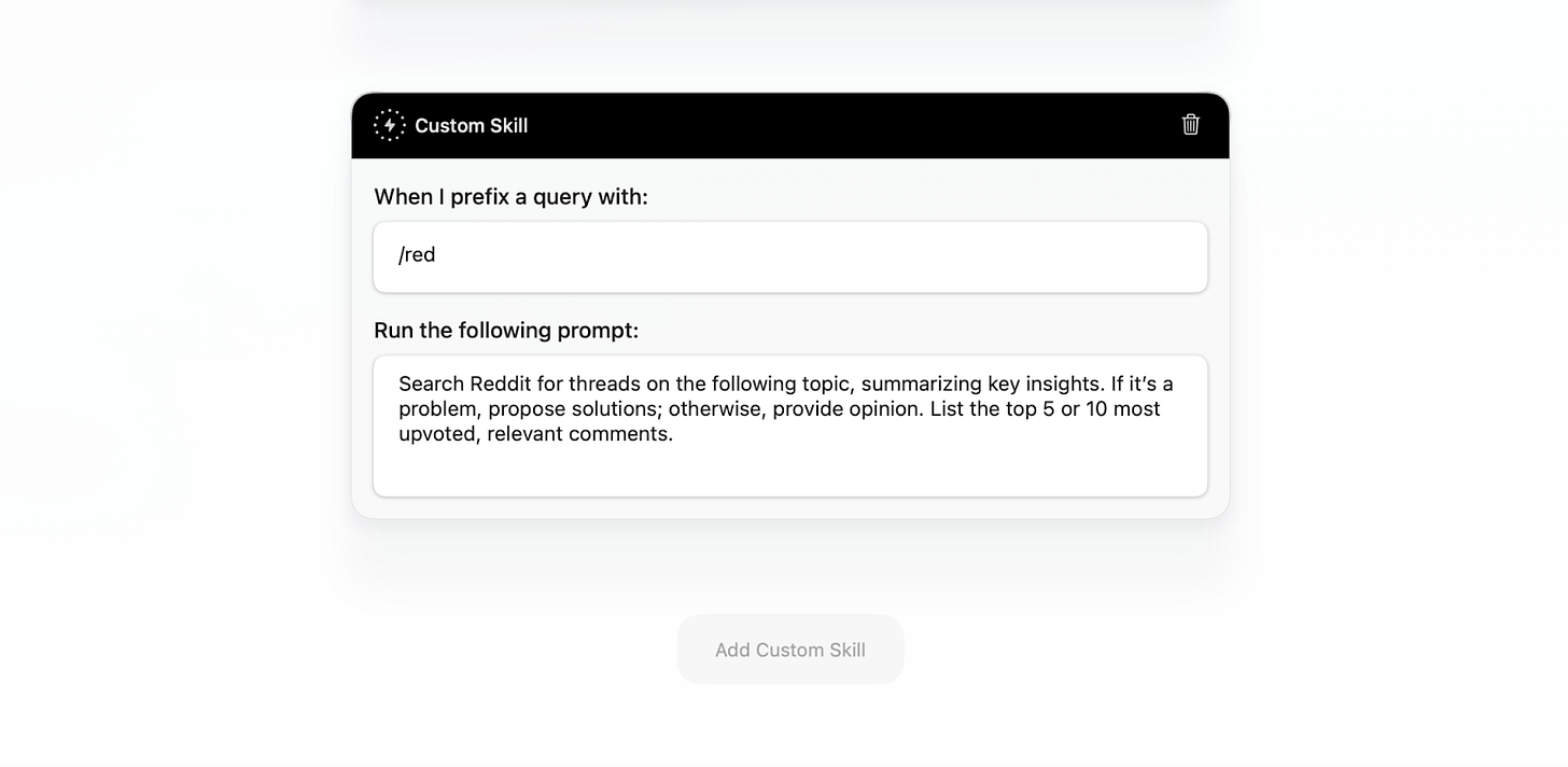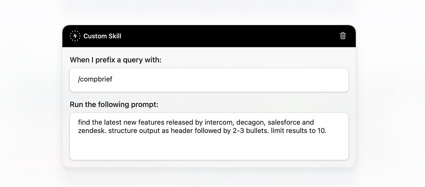 Dia also comes with the ability to create custom skills as shortcuts. Skills allow you to quickly run prompts that you pre-program and run whenever you need them.