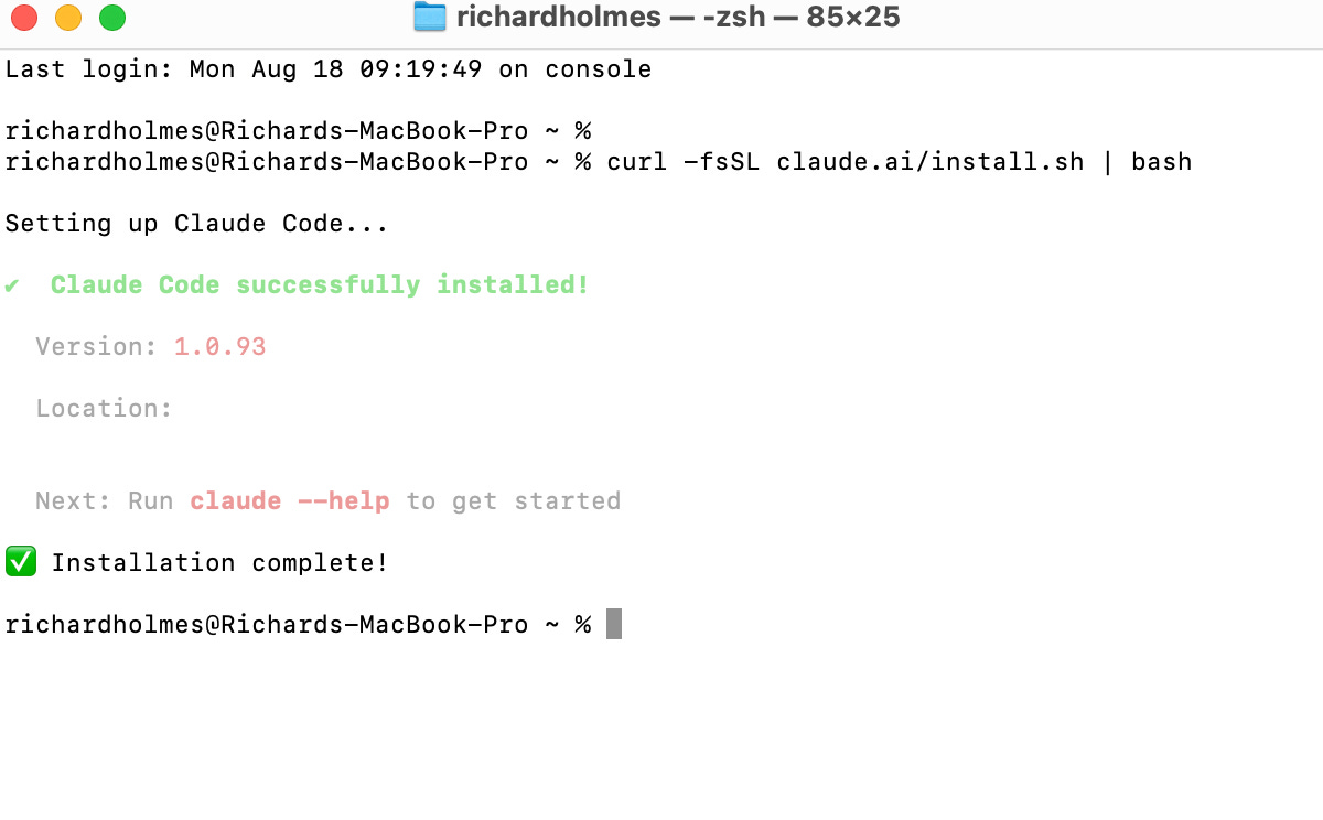 Once Claude Code is installed youâll get a confirmation message in your terminal: