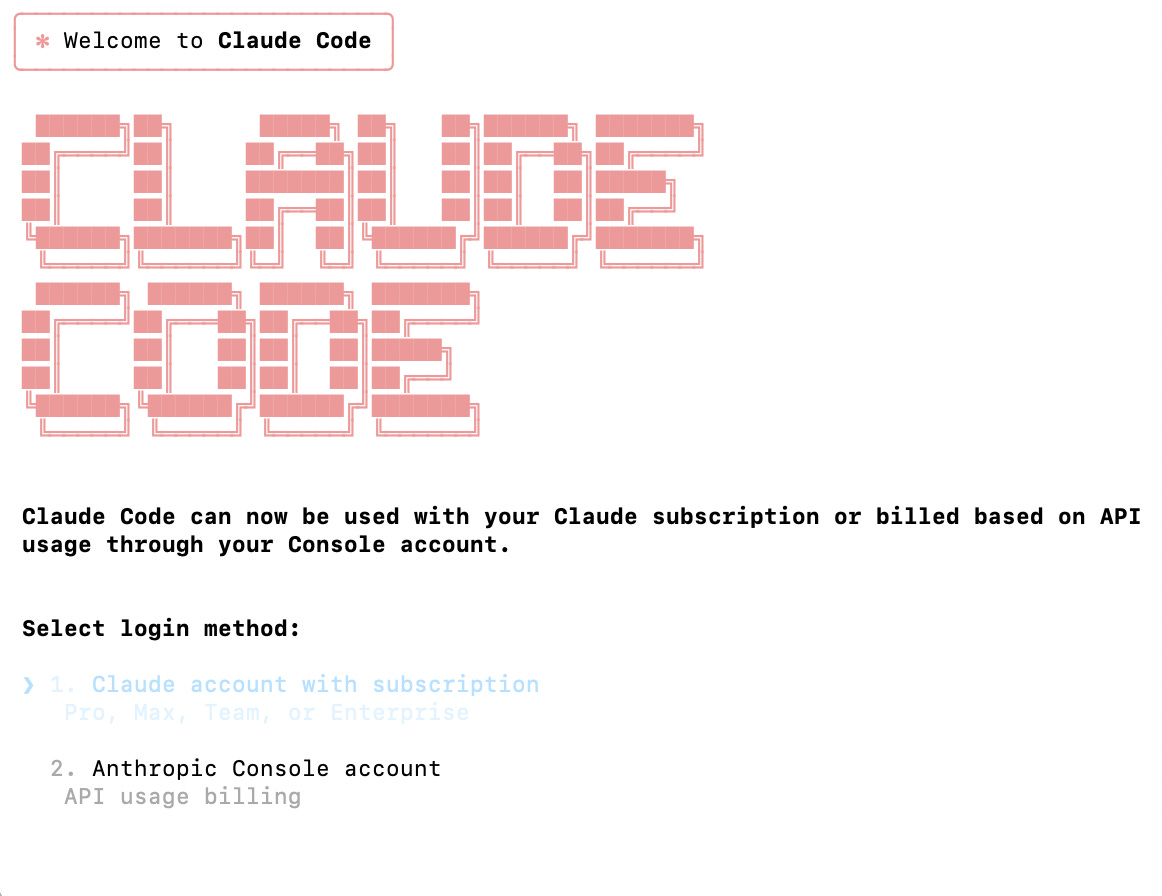 In your Terminal, type âClaudeâ and this will start Claude Code. Youâll see a screen that looks like this. It will ask you to login with a Claude subscription.