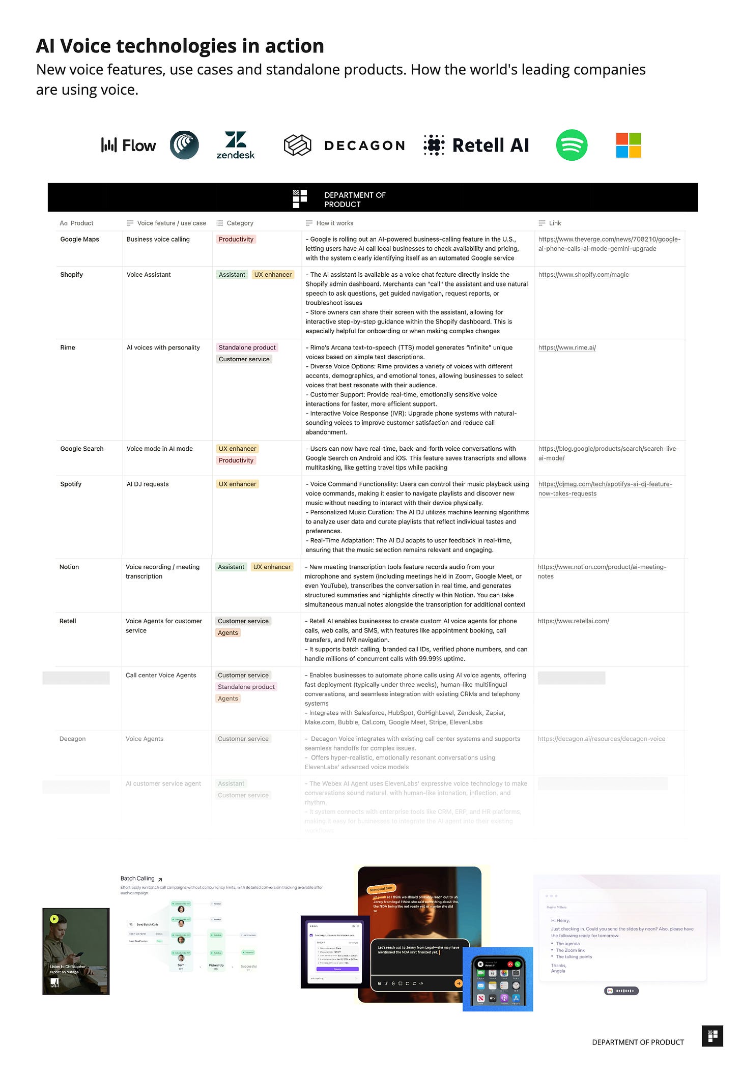 This analysis includes 25+ different examples of new AI voice features and use cases. Here’s a snapshot of the AI voice features and use cases: