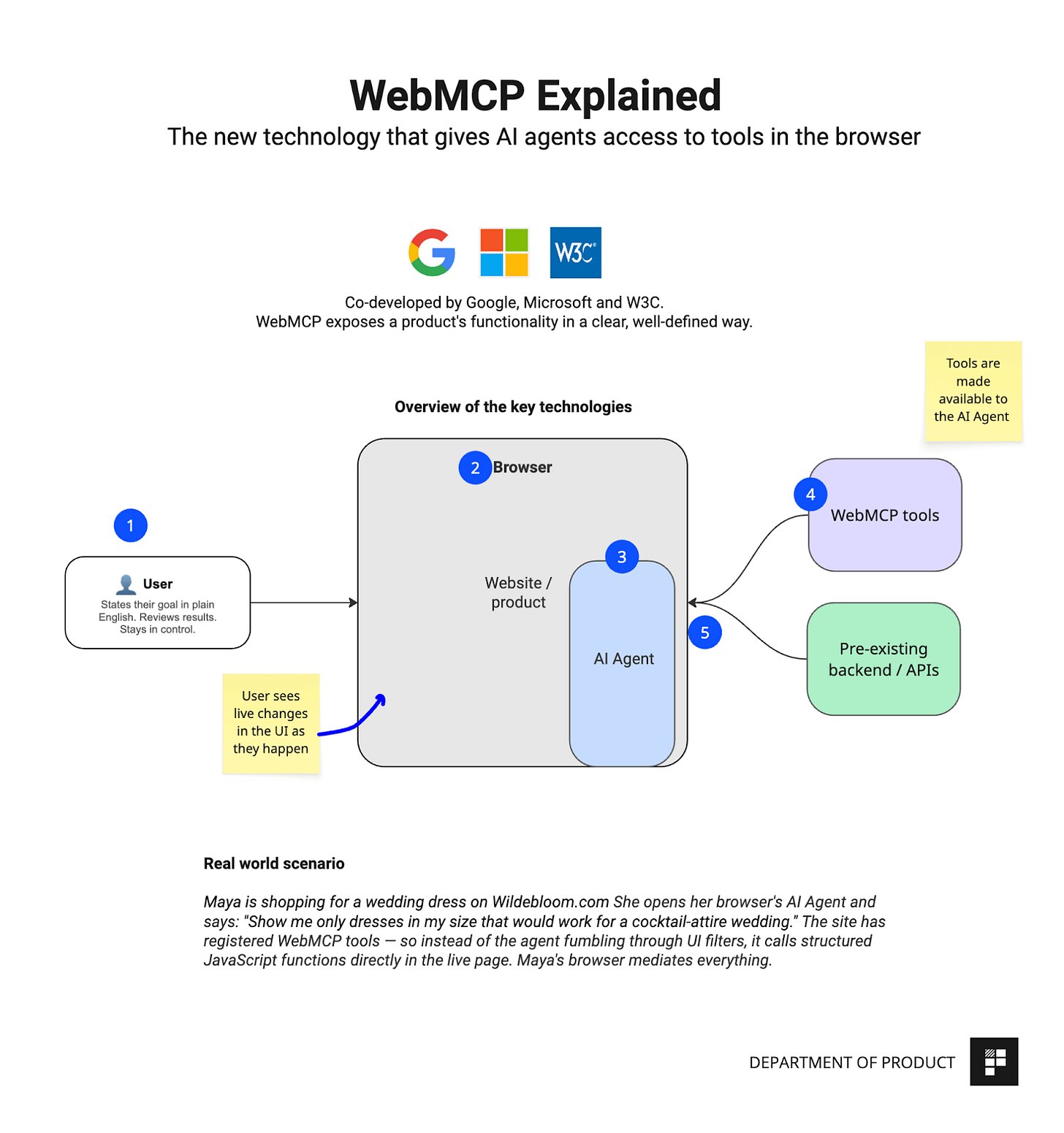 It’s called WebMCP (Web Model Context Protocol) and it’s a major new project developed in collaboration between Google, Microsoft and W3C. If all goes to plan, it could fundamentally change the way users interact with your product by making it easier for AI Agents in the browser to understand what features and tools your product offers - and then acting up on them.
