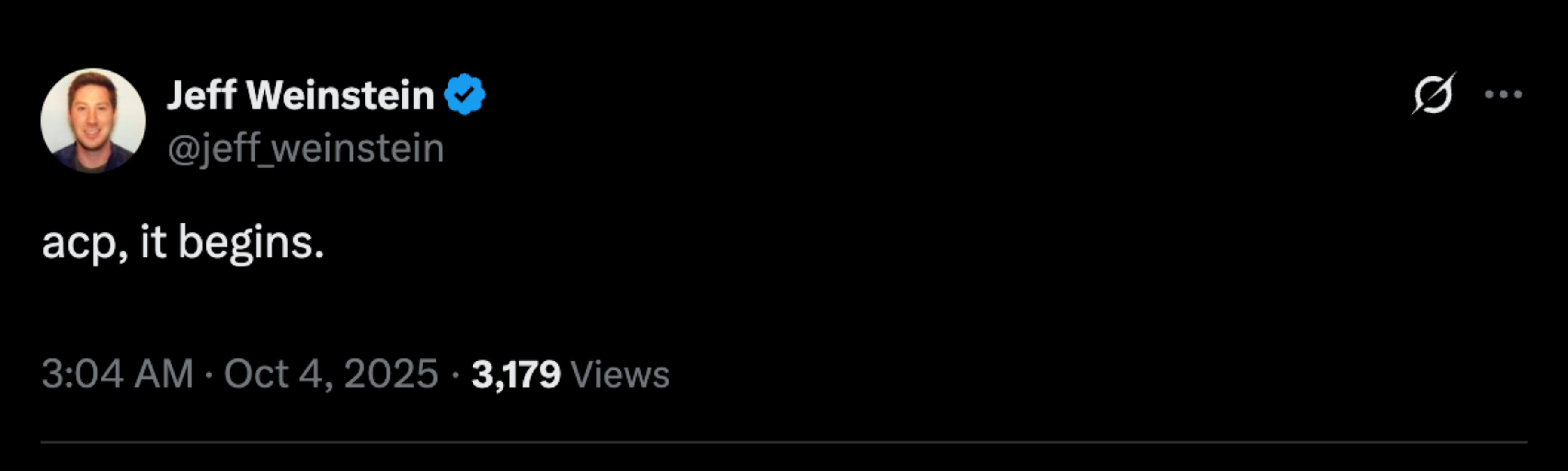 Jeff goes on to say that Stripe has big plans for the protocol with new tooling, SDKs, MCP support, sample apps, test suite, and quickstart guide for the Agentic Commerce Protocol (ACP) all set to be released soon.